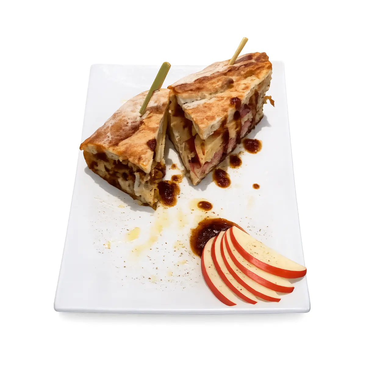 Welsh cheddar, pastrami, honey crisp apples, apple butter.